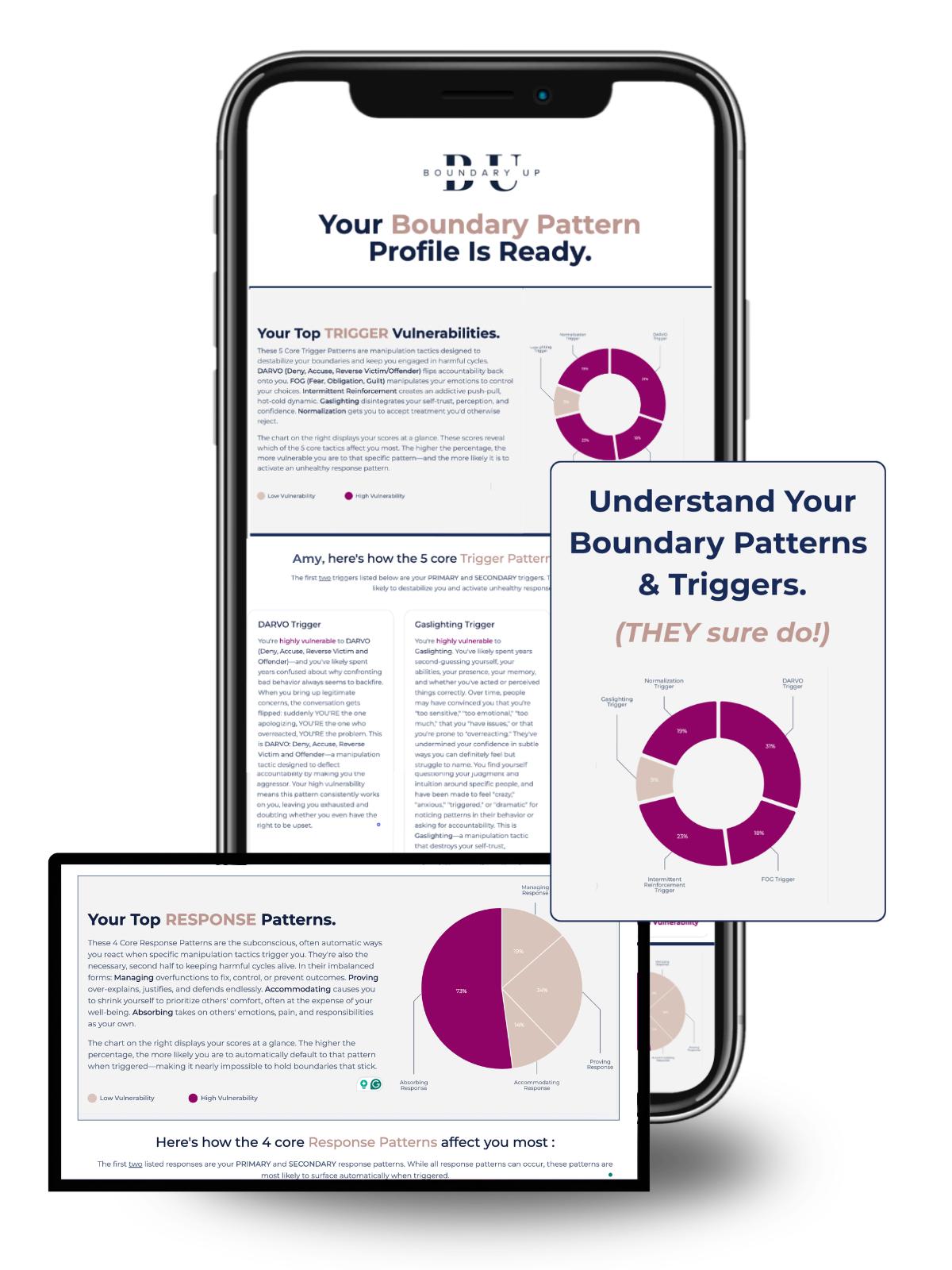 Answer 50 simple yes/no questions and get a personalized breakdown of your boundary patterns—what's triggering you and how you're unknowingly tricked into responding.
